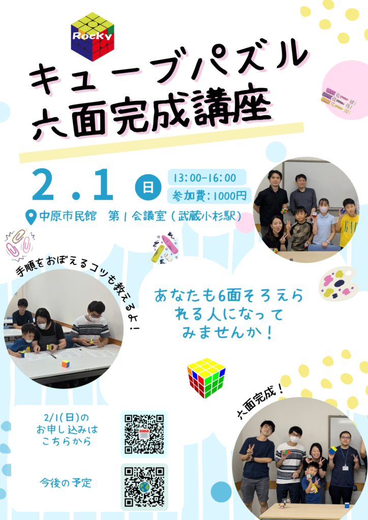 | 講座の内容 | キューブパズルの六面完成講座 |